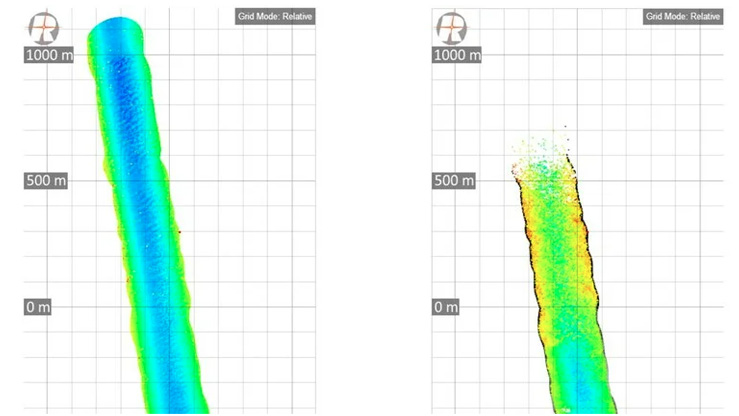 受光感度を高くしているため近赤外レーザーよりも空中・水中にノイズデータが多く発生します。RIEGLソフトウェア「RiPROCESS」にて効率良くノイズ除去が可能です。